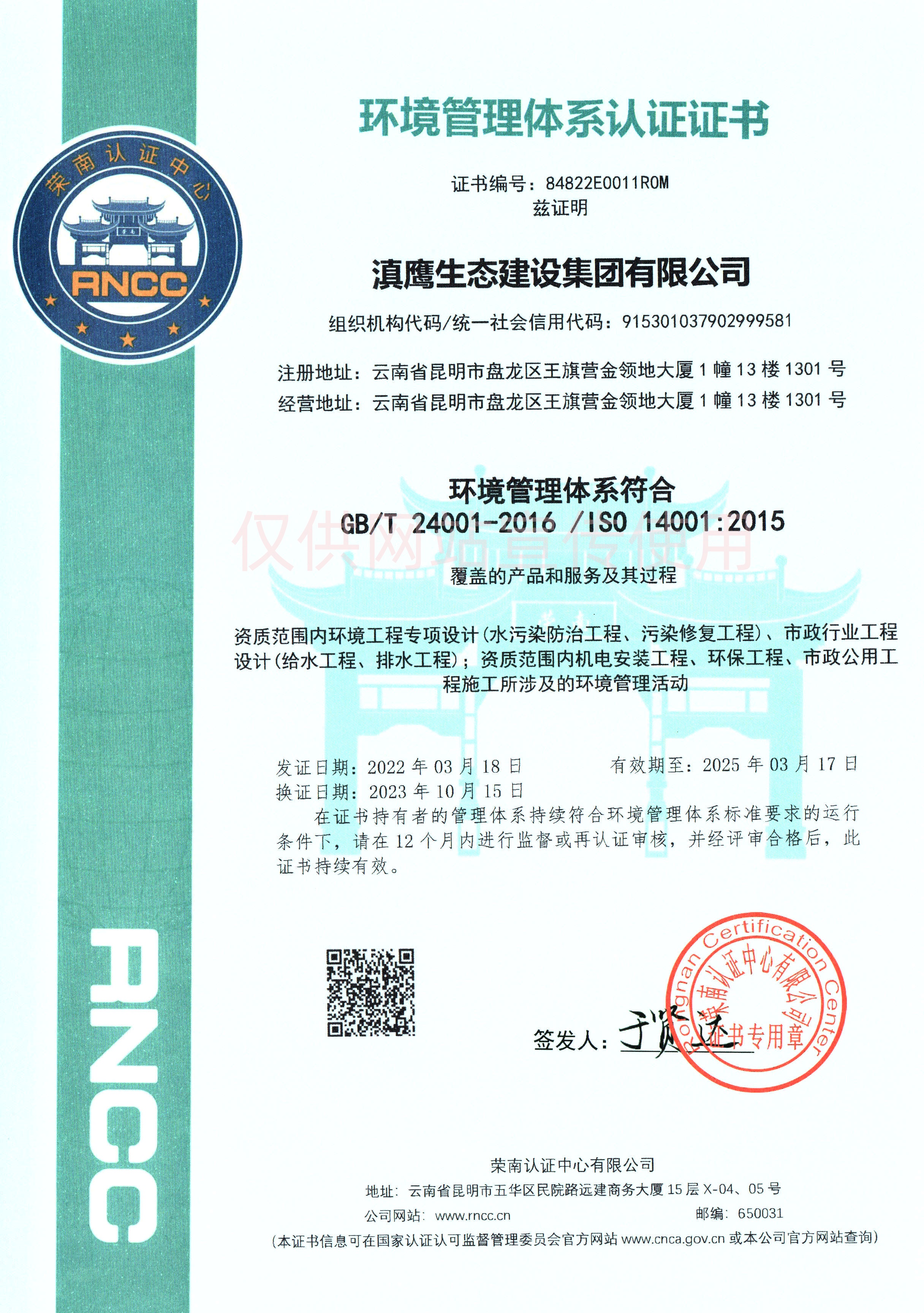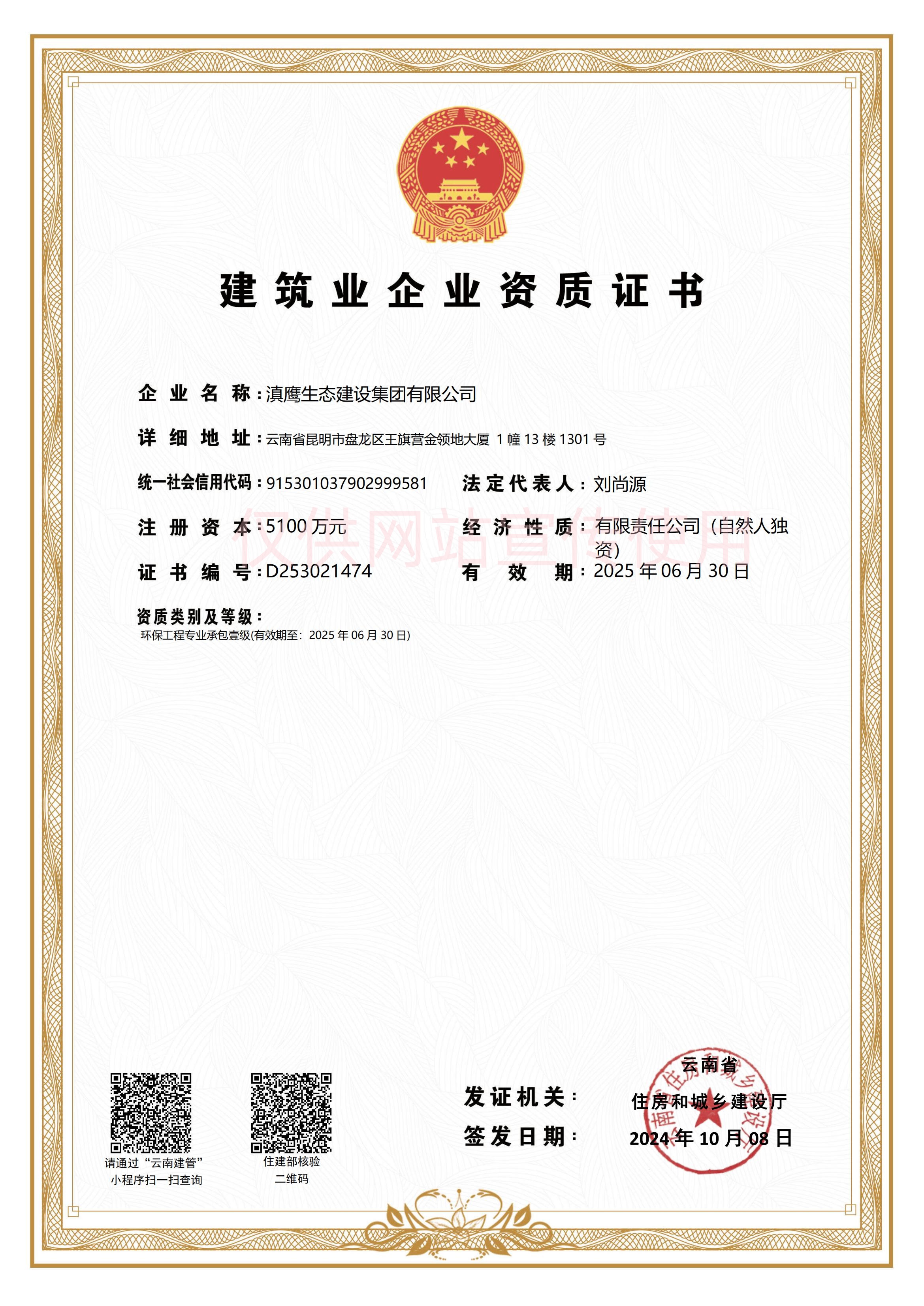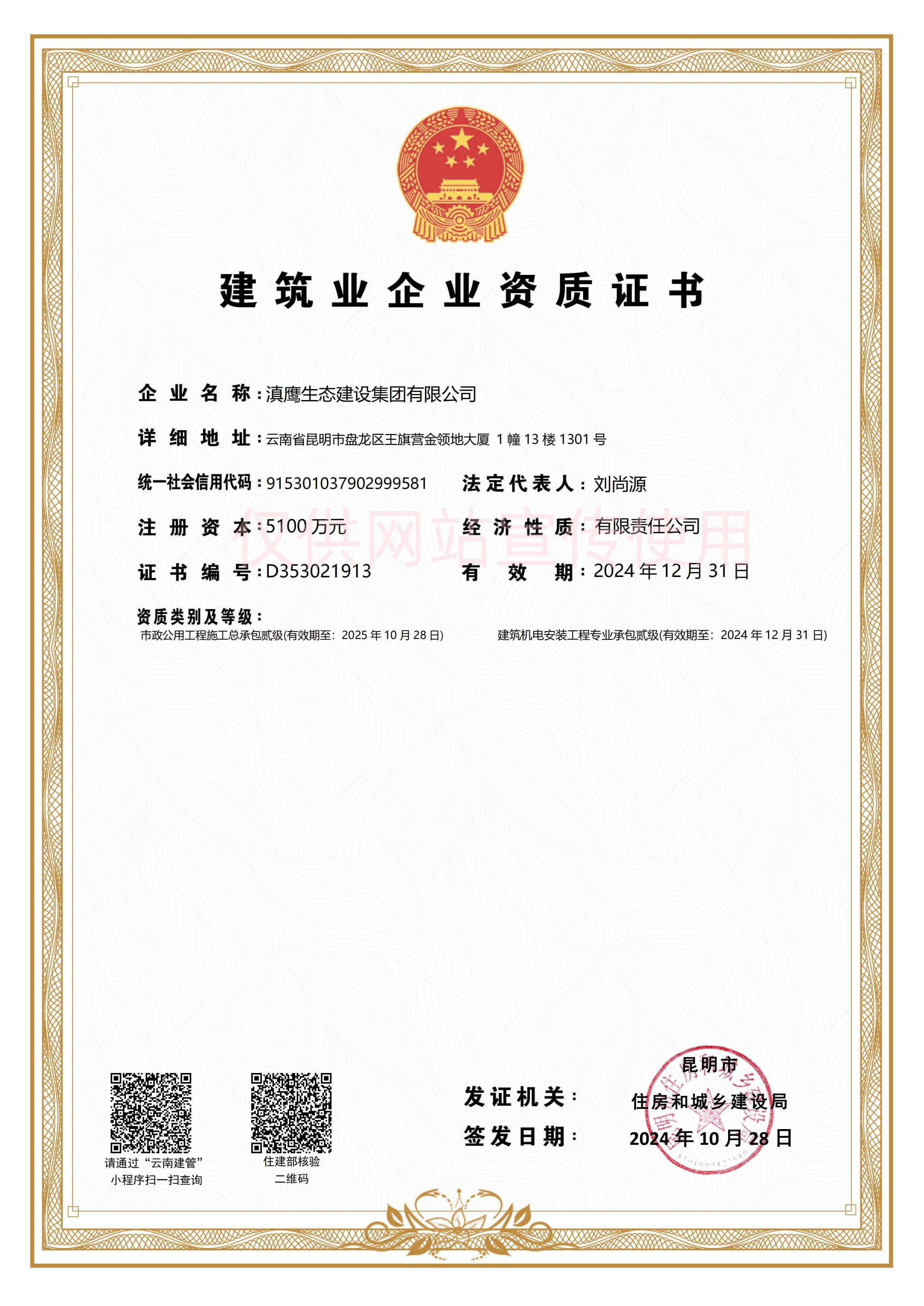 滇鹰生态建设集团以雄厚的技术力量、先进的经营理念,浓厚的企业文化,不懈的创新精神,迅速发展成为生态环保行业中最具影响力的企业之一。集团具有工程咨询资质甲级、环境工程设计资质、市政行业工程设计资质、环保工程专业承包壹级资质、市政公用工程施工总承包贰级资质、环境污染治理甲级资质、污染治理设施运营资质等,并荣获“国家高新技术企业、国家级科技型中小企业、云南省“专精特新”中小企业”、昆明市企业技术中心、云南省挂牌企业等荣誉称号。